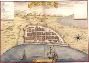 Map of the port of Callao during the 17th century, extracted from the Atlas del Marqués de Heliche