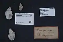 - ↑ Woodring, W. P. (1928). Miocene mollusks from Bowden, Jamaica. Part II. Gastropods and discussion of results. Contributions to the geology and paleontology of the West Indies. Carnegie Institution of Washington Publication 385:vii + 564 pp., 3 figs., 40 pls. Page 263.