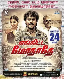 Enkitta Mothathe (transl. Don't mess with me) is a 2017 Indian Tamil-language action drama film, written and directed by Ramu Chellappa. The film features Natraj, Rajaji, Parvathy Nair and Sanchita Shetty in the leading roles. Co-produced by Eros International with RV Films, the film tells the story of two fan club leaders of the actors Kamal Haasan and Rajnikanth in Tirunelveli during 1988. The film had a theatrical release across Tamil Nadu on 24 March 2017.[1][2][3]