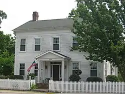 Enos Michael House, also known as the Michael-Sullins House, is a historic home located in Fremont, Steuben County, Indiana. It was built in 1848, and is a 2+12-story, rectangular, five bay, Greek Revival style frame dwelling. It sits on a cut stone foundation and has a side gable roof. A rear addition was built about 1920. It features a recently added one-bay, central entrance portico.[2]:2–3