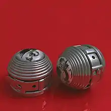The Abstraction of the Void is a series of small sculptures made of metal, resin and other materials. It is inspired by erotic accessories, reinterpreted through a wide range of aesthetic solutions. For example, the artist modifies the form of a butt plug with precious, unexpected details that have nothing to do with the erotic object’s original purpose, yet still maintain its possible anal use. The concept of “emptiness”, which Corte takes from classical art,[57] takes on an ironic connotation in this series of works, projecting the aesthetic dimension of sculpture into new areas including the concepts of pleasure and pain, formal refinements and scatological eroticism. The Devotees and Wannabes series involves a group of small and medium-small metal sculptures designed by the artist as artificial body parts – fingers, limbs, etc. – missing as a result of voluntary amputation. Corte references the practice by groups of people who in the early 1980s were labeled in the jargon of analytic psychology, as well as U.S. urban subculture, as devotees (people attracted by amputations), or wannabes (people who practice self-amputation).[58][59] These fetishists performed voluntary self-mutilation for erotic or merely decorative reasons as they searched for a new aesthetic of the body.[60] Corte’s sculptures are not simply “prostheses” imitating the original form of the missing body part; rather, they take on free aesthetic connotations with the addition of elements which widen the possibilities for the use of the artificial part itself. For both the Abstraction of the Void and the Devotees and Wannabes series, Corte made a set of “promo pictures” of the sculptures, placing the objects in singular poses and settings and photographing them as if they were advertisements for a product. These promo pictures were considered an art form in and of themselves and not simply a commercial o promotion strategy.