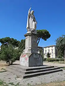 Enrico Pazzi (20 June 1818 – 27 March 1899) was an Italian sculptor, mainly active in Florence, Italy. He is known for his Monument to Dante (1857-1865) in the Piazza Santa Croce, Florence, and for the Prince Mihailo Monument in the center of Serbian capital city Belgrade.