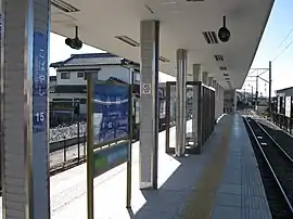 The station has a single unnumbered island platform, with the station building built onto one end of the platform. The station building has automated ticket machines, and automated turnstiles which accept the NicePass smart card, as well as ET Card, a magnetic card ticketing system. The station is unattended.