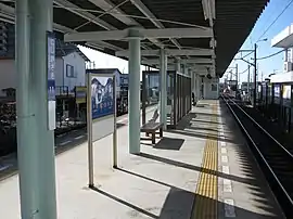 The station has a single unnumbered island platform connected to the station building by a level crossing. The station building has automated ticket machines, and automated turnstiles which accept the NicePass smart card, as well as ET Card, a magnetic card ticketing system. The station is attended.