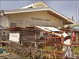 Agriculture made up a larger part of the economy 10 years ago but today many are finding alternatives to field work. Poor maintenance of drainage and irrigation coupled with recent crop-killing floods have also contributed to more people moving from the farms to the factories. The handful of die-hard farmers today export most of their produce to larger markets in Georgetown, namely Stabroek Market and Bourda Market, which unlike Enterprise's marketplace, are open everyday except Sundays. The local market opens only on Fridays and have attracted many of out-of-village goods and produces recently.