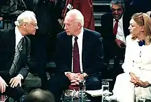 Kishon talking with Prime Minister Yitzhak Rabin, 1992