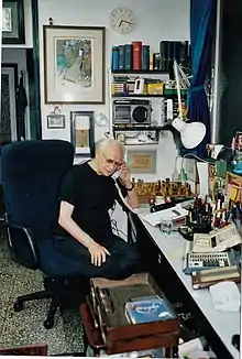 Kishon was a lifelong chess enthusiast, and took an early interest in chess-playing computers. In 1990, German chess computer manufacturer Hegener & Glaser together with Fidelity produced the Kishon Chesster,[7] a chess computer distinguished by the spoken comments it would make during a game. Kishon wrote the comments to be humorous, but were also carefully chosen to be relevant to chess and the position in the game.[8]