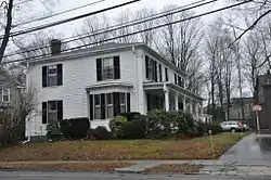 The Ephraim Weston House is a historic house in Reading, Massachusetts.[2] It is incorrectly listed on the National Register of Historic Places as the Ephrain Weston House, at 224 West Street.[1] It was built in the early years of the 19th century by Ephraim Weston, a local real estate developer and businessman; he operated a local general store and a shoe manufacturing business, one of the early such businesses in the town. It is a two-story wood-frame structure, with a hip roof and two chimneys. The main facade faces south (not to the street, which lies to the west), and has a single-story porch extending across its width, supported by square posts. The building corners are pilastered, and a single-story bay projects from the west side. The house is locally distinctive as a rare Federal period house with a hip roof and later applied Italianate styling.[2]