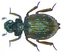 Epimetopidae is a family of semi-aquatic beetles belonging to the Hydrophiloidea. They are found in sand and gravel at the edges of streams, rivers and shallow freshwater ponds.[1] These beetles are shorter than half a centimeter long and have a pronotum with a central projection forming a shelf above the head. On the underside of the abdomen only four sternites are visible. There are approximately 72 described species in three genera, Epimetopus which is restricted to the New World,[2] mostly Neotropical, Eupotemus with two Afrotropical species and Eumetopus[3] with some Oriental species. Females carry their eggcases on the underside of the abdomen. The larvae are probably carnivorous based on their mouthparts and likely live in the same habitats as the adults.[1]