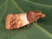 The wingspan is 14–16 mm.[2] Adults are on wing from June to July in one generation per year.