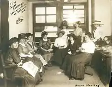 During World War I, the Equal Suffrage League combined their efforts towards suffrage with war efforts. They protested the repeal of the Federal Child Labor Law and investigated the high cost of milk, among other actions.[1] President Woodrow Wilson supported suffrage more after their display of patriotism during the war.[5]