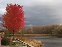 The Eramosa River Trail in Guelph extends 4.1 kilometres (2.5 mi) from York Road to Stone Road, passing through Eramosa River Park and crossing Victoria Road along the way.[23] It is open year-round, and is amenable to snowshoeing in the winter. A section of the trail between York Road and Lawrence Avenue is wheelchair accessible. It is part of a 20 kilometres (12 mi) network of trails that intersect around the Eramosa River.[18]