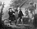 Depiction of Deacon Per singing for a glass of schnapps in Act I, scene 4, Wilhelm Marstrand, 1865.