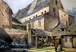 Two years later, he participated in the January Uprising.[2] When it was suppressed, he went into a self-imposed exile, first in Vienna, then to France, where he may have worked as a decorator in Marseille before going to Paris. Later, he joined the French Foreign Legion and was wounded fighting in the Franco-Prussian War.[1] After 1871, he returned to Poland and settled in Lwów, where he painted murals at St. George's Cathedral and created sets for several operas.[2]