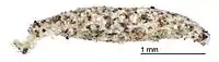 The larvae are most likely lichenivorous. Several small (3.5โ4.2 mm long) mature larval cases, some with pupal exuviae attached were collected under lichen covered rocks. It is likely that these are the larval cases of E. grayi. These cases are mostly white, speckled with small grains of sand and minute, dark fragments from the rocky substrate.