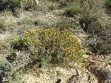 • Eremaea asterocarpa subsp. brachyclada Hnatiuk[7] is a small, low shrub with short, twisted branches and leaves with 5 to 7 or more veins;[8]