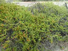 Eremophila glabra subsp. carnosa occurs in coastal areas between Gregory and Leeman where it grows in sand near saline flats.[1][2][4]