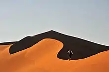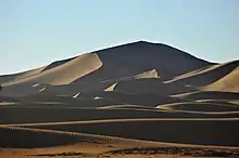 Erg Chigaga (or Erg Chegaga, Berber: ⴻⵔⴳ ⵛⴳⵉⴳⴰ, Arabic: عرق شقاق or Edaya el-Hamra, Arabic: الضاية الحمراء) is the largest and still untouched of the major ergs in Morocco; the other is Erg Chebbi near Merzouga. Both ergs are located on the far western edge of the Sahara desert.[1]