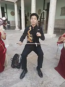 - Gōng (弓), bow, has screw device to vary bow hair tension