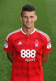 Lichaj signed a two-year contract with Championship club Nottingham Forest on June 19, 2013.[28] He made his debut in a 1–0 win against Huddersfield Town on the opening day of the season.[29] In December 2014, he extended his deal until the summer of 2017.[30] On October 20, 2015, Lichaj scored his first Nottingham Forest goal in a 1–1 draw with Burnley at the City Ground.[31] Lichaj captained Forest for the first time on September 27, 2016, for a home game against Fulham and scored his second goal for the club in his next home game, opening the scoring in a 3–1 win over Birmingham City.