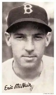 Donald Eric McNair (April 12, 1909 – March 11, 1949) was a Major League Baseball shortstop from 1929 to 1942. He played for the Philadelphia Athletics, Boston Red Sox, Detroit Tigers, and Chicago White Sox. McNair became an everyday player with Philadelphia in 1932, and he led the league in doubles that season. After his playing days, McNair had brief tenures as a minor-league manager and as a baseball scout. He died of heart problems a month before his 40th birthday.
