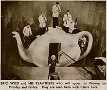 As a member of Billy Bissett's band, Billy Bissett and His Canadians, Wild travelled to Monaco to perform at the International Sporting Club resort casino in Monte Carlo. The band was then booked at Savoy Hotel, London in 1936 and The May Fair Hotel, London in 1936 and 1937.[3] In 1937 Wild was offered his own programme on the BBC, Eric Wild and the Tea-Timers, which was the first television dance band ever broadcast.[4]