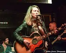Erica Blinn is an American Rock artist based out of Nashville, TN.[1] She is originally from Worthington, Ohio, a suburb of Columbus, OH. She learned everything about guitar and harmonica from her dad, Jerry.[2] She started playing the harmonica when she was only 14[2] and started playing the bars then too.[3] The harmonica turned into a guitar, and soon enough she was singing to the sound of her guitar.[4] Erica Blinn played in numerous bands in high school, and in college too.
