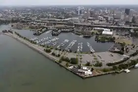 The Erie Basin Marina is a municipal inland harbor in Buffalo, New York. The marina is primarily for residential usage,[2]: 353 containing a large array of boat docks, gardens, and a public observatory overlooking the city and waterfront. The marina's harbor discharges into the Niagara River and Lake Erie.