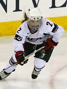 Three-time member of the United States Women's National Team for the International Ice Hockey Federation World Women's Championship (gold-2008-09, silver- 2007) … Four-time member of the United States Women's Select Team for the Four Nations Cup (1st-2008, 2nd-2006-07, 2009) … Member of the United States Women's National Team in 2009– 10 (Qwest Tour) … Three-time member of the United States Women's Under-22 Select Team for the Under-22 Series with Canada (2006–08). Cocaptained the team in 2008 … Four-time USA Hockey Women's National Festival participant (2006–09) … Four-time USA Hockey Player Development Camp attendee (2002–05).[4]