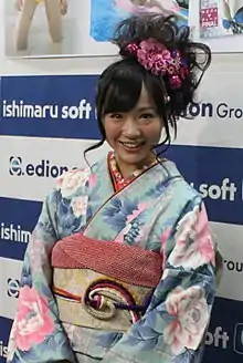 Erika Yazawa (谷澤恵里香, Yazawa Erika, born November 15, 1990) is a Japanese gravure idol. She is from Tokyo, and was a first year member (#7) of the idol group Idoling!!!. On December 11, 2011 it was announced that she would graduate from Idoling!!! on December 31 together with Fonchi (#8). Her nickname is 'Yaza-pai'.