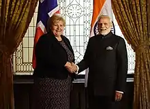 - 1 2 "Prime Minister Erna Solberg". 16 October 2013. Archived from the original on 2019-12-15. Retrieved 2019-10-31.
