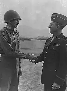 Childers, at left, with General Jacob L. Devers shortly after receiving the Medal of Honor