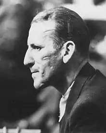 It was said that even Himmler feared him, as Kaltenbrunner was an intimidating figure with his 1.76 to 1.8m height, facial scars, and volatile temper.[30][31] Kaltenbrunner was also a longtime friend of Otto Skorzeny and recommended him for many secret missions, allowing Skorzeny to become one of Hitler's favourite agents. Kaltenbrunner also allegedly headed Operation Long Jump, an alleged plan to assassinate Stalin, Churchill, and Roosevelt in Tehran in 1943.[32][lower-alpha 2]
