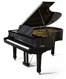 The inventions and developments of Kaps were often patented, including a resonator and a baby grand piano (double overstrung grand piano). Other similar and ingenious inventions were patented by Ernst Kaps such as a device that extended the soundboard into the grand piano lid.[14] Although revolutionary, most were not economically practical and were not commercially produced.[15]