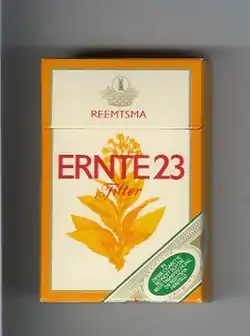 Ernte 23 is a German brand of cigarettes, currently owned and manufactured by Reemtsma, a subsidiary of Imperial Tobacco.[1] "Ernte" is German for "harvest".