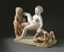Women's erotica exists to cater towards the sexual gratification of women consuming erotic material. Feminist erotic media often centers female pleasure instead of catering to the male gaze. Feminist erotic art had a boom in the mid-20th century, most iconically transforming the idea of the nude female figure from an object of sexual pleasure to a symbol for a woman's sexual liberation.[18] Martha Edelheit was a pioneer of modern women's erotica, flipping the genre on its head by focusing her art on the nude male figure.[19] It was not unusual for a man to be seen as an object of sexual desire in erotic media, but these portrayals were often found in gay pornography, and were often created or published by another man. Edelheit's work as a woman and as an artist was foundational for modern-day feminist erotic media.[18]