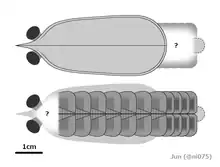 Erratus[lower-alpha 1] is an extinct genus of marine arthropod from the Cambrian of China. Its type and only species is Erratus sperare.[lower-alpha 2] Erratus is likely one of the most basal known arthropods, and its discovery has helped scientists understand the early evolution of arthropod trunk appendages. Some of the stem-arthropods like radiodonts did not have legs, instead they had flap like appendages that helped them swim.[1] Erratus on the other hand had not only flaps but also a set of primitive legs.[2] It also supported the theory that the gills of aquatic arthropods probably evolved into the wings and lungs of terrestrial arthropods later in the Paleozoic.[3]