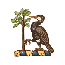 ![]() Arms of Errington, Baronets of Ness: "An open book clasped on a chief Azure a spur rowel upwards between two portcullises chained Or." | |
