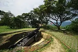 The battery was first constructed in 1840 by Yao Ying (Chinese: 姚瑩), disciplinary officer of the Qing garrison in Taiwan. It was originally located by the sea and was used by the garrison to fend off British assaults during the Opium War.[1] It was part of the Taiwan Seventeen Fortification Plan (Chinese: 台灣十七口設防圖說狀), which Yao composed and presented to the Qing court.[2]