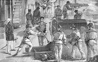 The French ironclad La Galissonnière bombards the Ershawan Battery, 5 August 1884