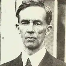 He was educated at home by tutors (with his brother Henry and cousin Robert Barton) until the age of ten, when he became a boarder at a preparatory school in England, returning to Glendalough for the holidays.[6] At the recommendation of his grandfather, Canon Charles Childers, in 1883 he was sent to the Haileybury and Imperial Service College. His performance there was initially described as "middling" but he later won school prizes in Latin and in his final year he was made "head of house".[6] There he won an exhibition to Trinity College, Cambridge, where he studied the classical tripos and then law.[7] He distinguished himself as the editor of Cambridge Review, the university magazine. Notwithstanding his unattractive voice and poor debating skills, he became president of the Trinity College Debating Society (known as the "Magpie and Stump"). Although Childers was an admirer of his cousin Hugh Childers, a member of the British Cabinet who had supported the first Irish home rule bill, he spoke vehemently against the policy in college debates, warning that "[Irish] national aspirations were incompatible with our own safety.".[3][8] A sciatic injury sustained while hillwalking in the summer before he went up, which persisted for the rest of his life, left him slightly lame and he was unable to pursue his intention of earning a rugby blue, but he became a proficient rower.[9]