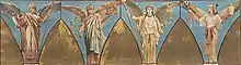 In 1882, Lefuel's successor Edmond Guillaume started making plans for the completion of the staircase. A team of Italian specialists created colorful mosaics for the vaulted ceilings, representing Victories holding palms and portraits of illustrious figures,[2][10] on a design by painter Jules-Eugène Lenepveu.[1]:107[11]