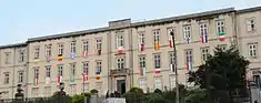 Its main body is dominated by a three-floor facade reconstructed in the Nationalist style.