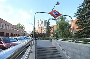 Esperanza [espeˈɾanθa] is a metro station on Line 4 of the Madrid Metro. It is located in fare Zone A.[1] It is named for the Esperanza ("Hope") housing development.