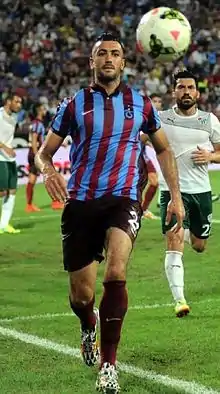 After moving to Watford permanently in the summer of 2014, Belkalem made the move to Turkish Süper Lig side Trabzonspor on a season-long loan deal linking up with former Algeria coach Vahid Halilhodžić.[9] Having made 16 appearances in the league, eight in the Europa League, scoring three goals, Belkalem finalised his loan spell at Trabzonspor on 2 June 2015.[10]