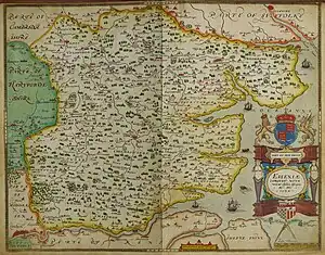 After the arrival of the Normans, the Forest of Essex was established as a royal forest, however, at that time, the term[20] was a legal term. There was a weak correlation between the area covered by the Forest of Essex (the large majority of the county) and the much smaller area covered by woodland. An analysis of Domesday returns for Essex has shown that the Forest of Essex was mostly farmland, and that the county as a whole was 20% wooded in 1086.[21]