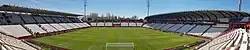The stadium holds 17,524[2] and was built in 1960. It replaced the ageing Campo del Parque and was inaugurated on 9 September 1960 with a match against Sevilla FC, which attended more than 12,000 people.[3] It had an initial capacity of 10,000. Floodlights were added in 1970 and a cover over the west side in 1979. The lighting towers also were constructed in 1970s.[3] Following promotion to La Primera in 1991, the east side of the ground was developed with the building of a twin-decked cantilevered stand. This took the capacity of the ground up to 14,000 with only half of them being seated places.[3] Further development in 1998 saw the removal of the athletics track, and the building of two open banks of seats at either end of the pitch. The north bank development also included new changing facilities. The pitch was also lowered in 1998 and a new stand was erected on the west side. This resulted in an increased capacity of 17,524. The last reconstruction of the stadium took place in 2017 bankrolled by the new club owner, Skyline International. The changes aimed to modernize the image of the Estadio Carlos Belmonte introducing new stands for VIP guests, press room, changing rooms and tunnels.[3]