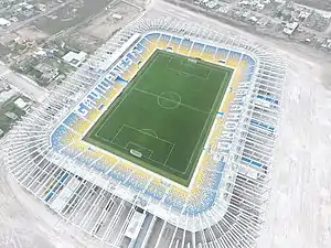 The stadium was completed in time for the 2017–18 Liga Premier season, in which the Gavilanes were admitted to the third-tier league as an expansion team.[2] On 19 August 2017, an inauguration ceremony was held before the team defeated Alacranes de Durango in their first Liga Premier home fixture with an attendance of about 16,000.[3]