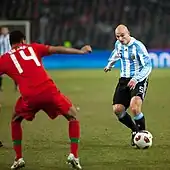 Esteban Cambiasso during a friendly match between Argentina and Portugal in Geneva, Switzerland on 9 February 2011