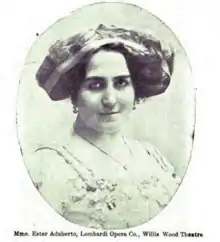 Ester Adaberto, a soprano,[3] debuted on the opera stage in 1897, in Pagliacci at the Teatro Nuovo in Mirandola. She was a member of the Castellano Opera Company and toured Eastern Europe with them. At Vilna she was shot in the arm by a jealous Russian suitor.[2]